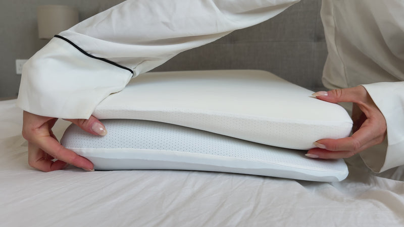 In der Schweiz entwickelt, vereint das Kissen medizinisches Know-how mit preisgekröntem Design. Die präzise ergonomische Form entlastet Nacken und Schultern, beugt dem Abknicken der Arme vor und sorgt für die natürliche, gerade Ausrichtung der Wirbelsäule, besonders in der Seitenlage.