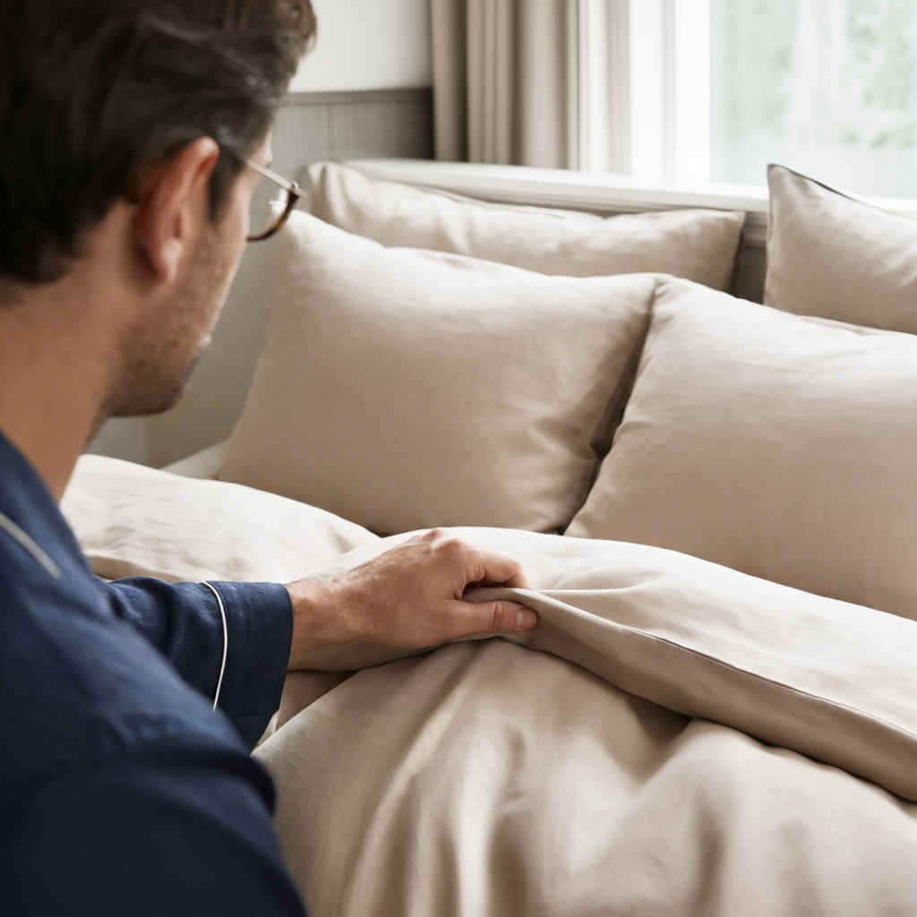 Wir machen Schlaf- und Heimtextilien für Menschen, die Ruhe ernst nehmen. Designed mit Sorgfalt. Gebaut für die Dauer. Nacht für Nacht.