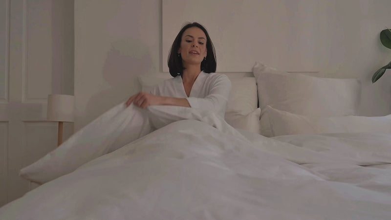 Die Hülle aus feinstem Baumwollsatin mit einer Fadendichte von 400TC rundet die Decke ab: edel im Griff, strapazierfähig und von natürlicher Eleganz. Durch die präzise Versteppung bleibt die Füllung gleichmäßig verteilt – Kältebrücken werden vermieden, und Sie genießen konstanten Komfort während der ganzen Nacht.